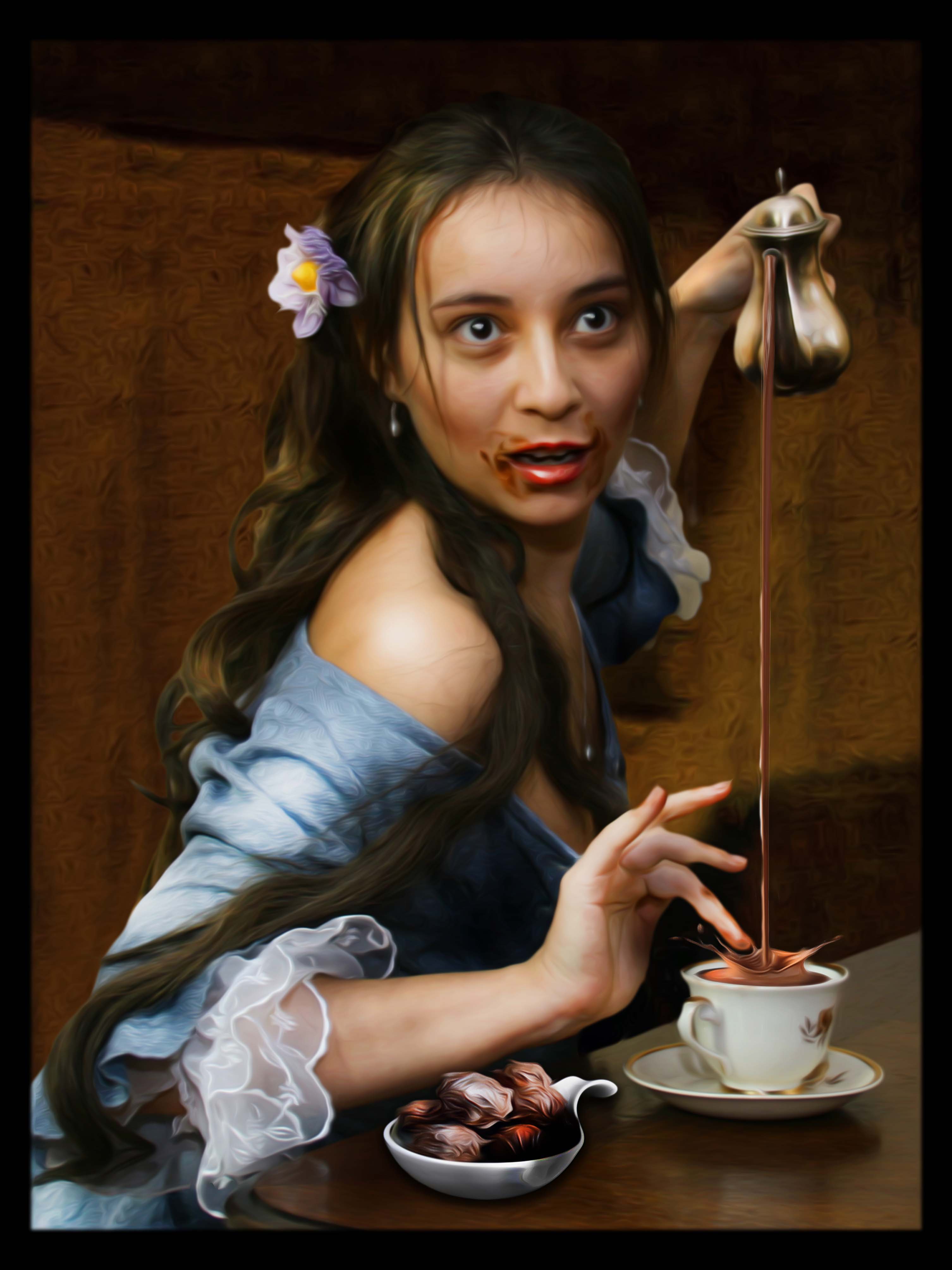 Studiofotografie und Umsetzung als digitales Gemälde für eine Theater-Requisite. Grundlage war ein Fotoshooting. Nach Auswahl des Bildes erfolgte die digitale Umsetzung als Gemälde. Druck auf Leinwand. Als zweite Requisite entstand noch eine "alte" Zeitung.